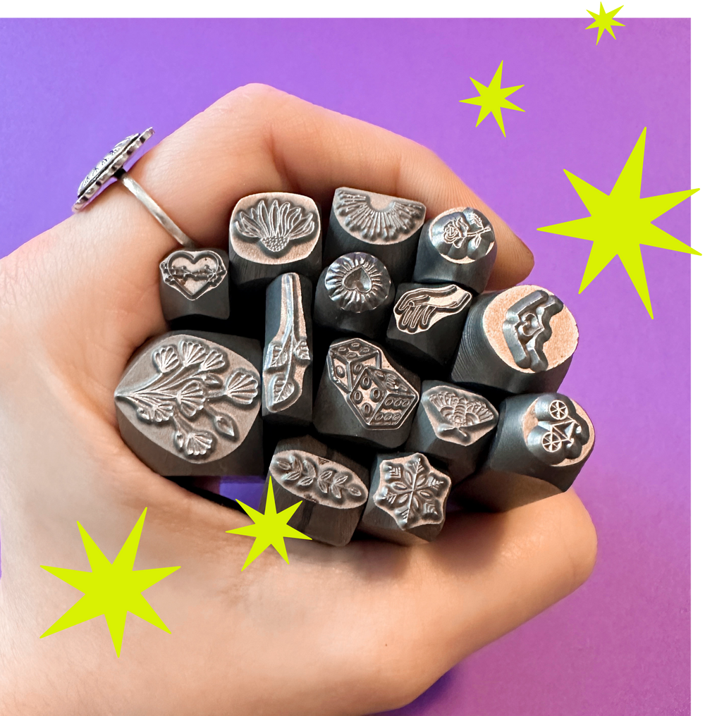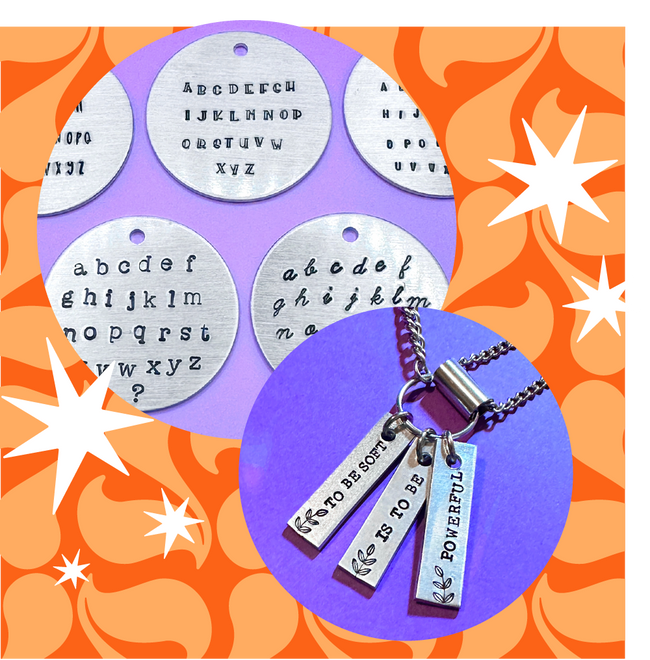 🔨 I stamp each letter/design by hand with traditional tools. Each stamp features a specific character or pattern, and when pressed into the metal, it leaves a permanent impression, allowing for personalized designs and unique creations. Each item is truly one of a kind.